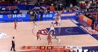 此后,上海男篮吹响了反击的号角,李弘权长传给到前场的洛夫顿,后者躲过摩尔的防守直接献上一记技惊四座的暴扣,随后古德温和张镇麟也都打开了“暴扣开关”,帮助上海男篮64-60反超!